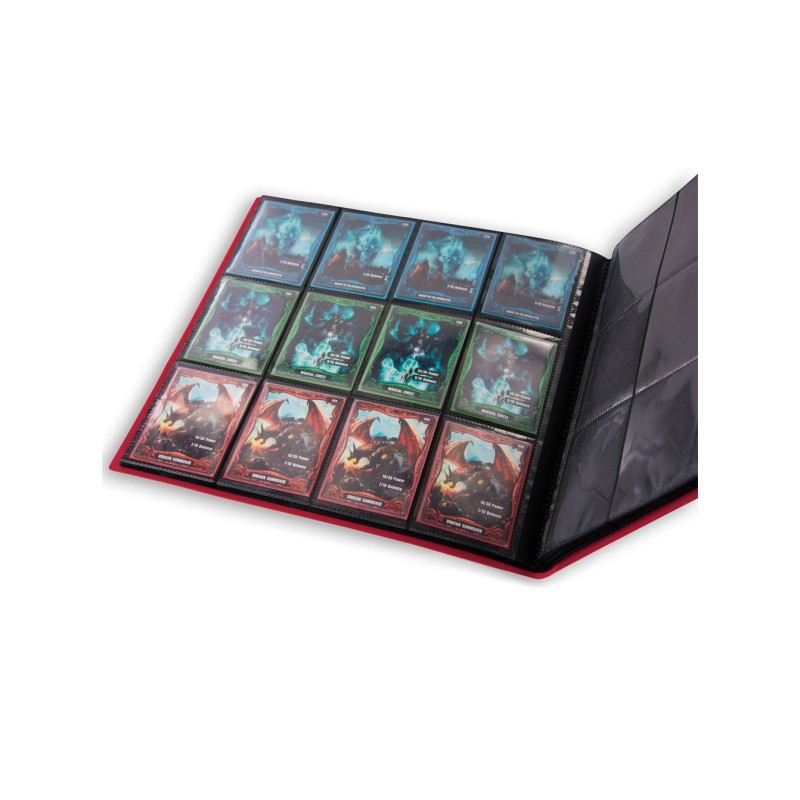 Album portfolio de collection à couverture flexible Rouge, contenant 20 pages fixes de 12 pochettes à fond noir pour cartes à collectionner (CCG / TCG).