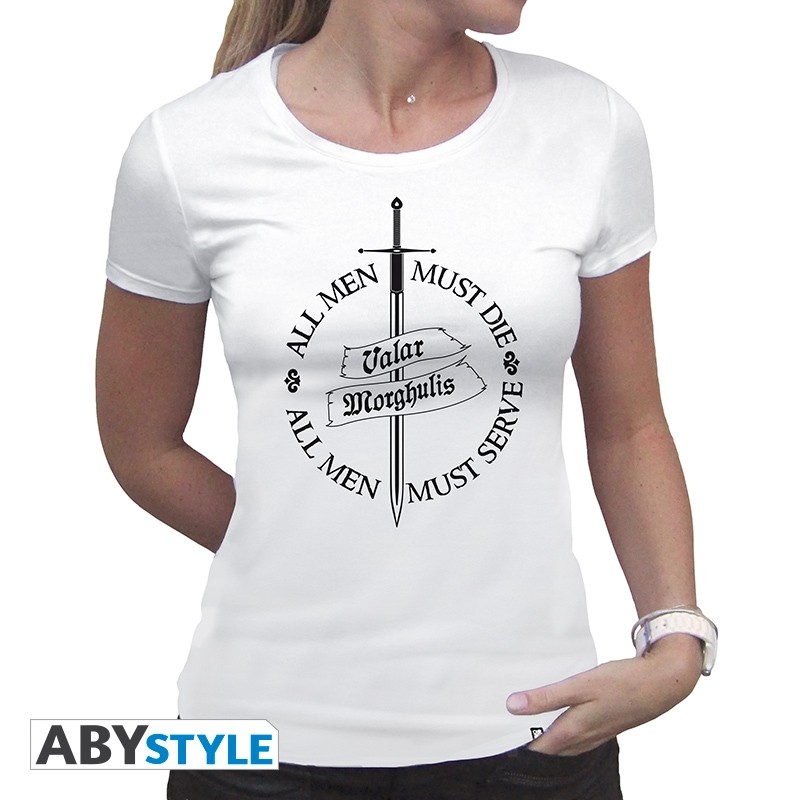 Livraison : Offerte dès 49 eurosT-Shirt Game Of Thrones, modèle Valar Morghulis femme MC white basic.